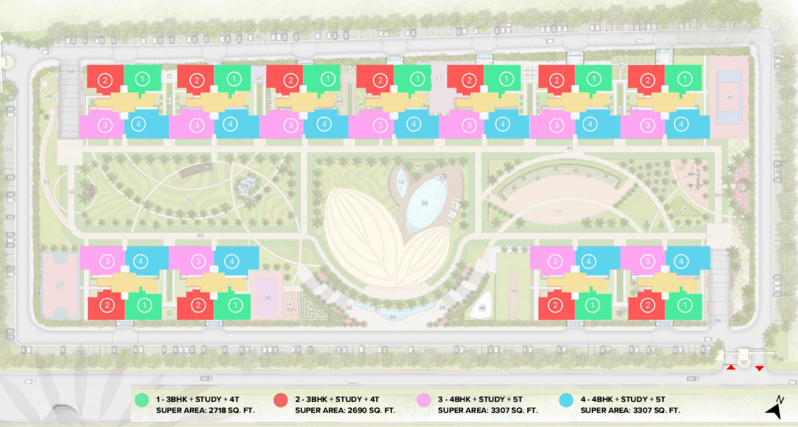The community is designed as a natural extension of wellness, featuring interactive landscape themes across vast central greens, nature walks, herbal and butterfly gardens, reflexology trails, lily ponds, zen zones, amphitheatres, and shaded cabanas. The outdoors here is not just aesthetic—it is experiential, immersive, and crafted to inspire relaxation, play, connection, and joy.